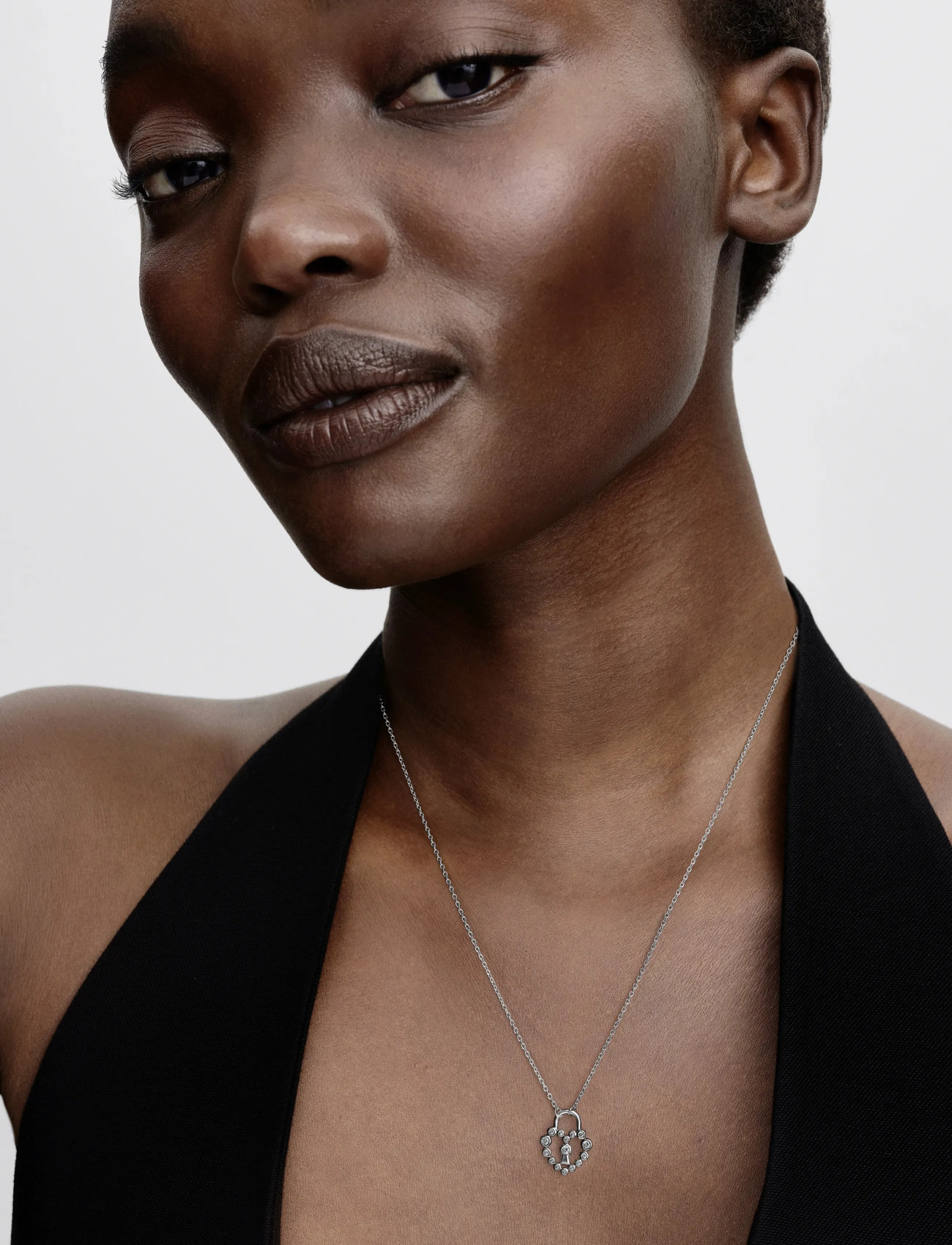 Pandora Sparkling Heart Padlock Pendant Necklace - Silver - 50 CM