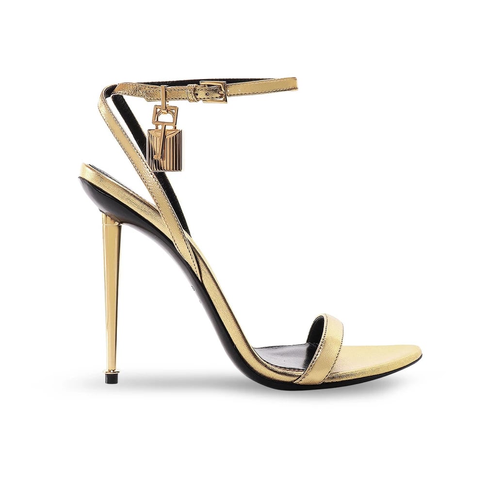 Tom Ford, Skor , Dam, 38 EU, Läder, Laminated Nappa Leather Padlock Pointy Naked Sandal