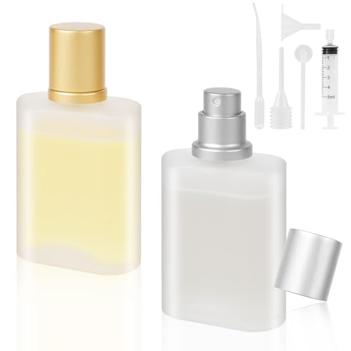 RNHDLY 2 stycken parfymsprejflaska 100 ml parfymsprejflaska påfyllningsbar, parfymflaska tom, reseparfymsprejflaska, parfym sprayflaska, glas med pipetter och tratt (silverlock)