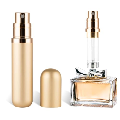 Lammcou Parfymspray för resor, påfyllningsbar parfymflaska på 5 ml, bärbar ministorlek för att ta med (guld)