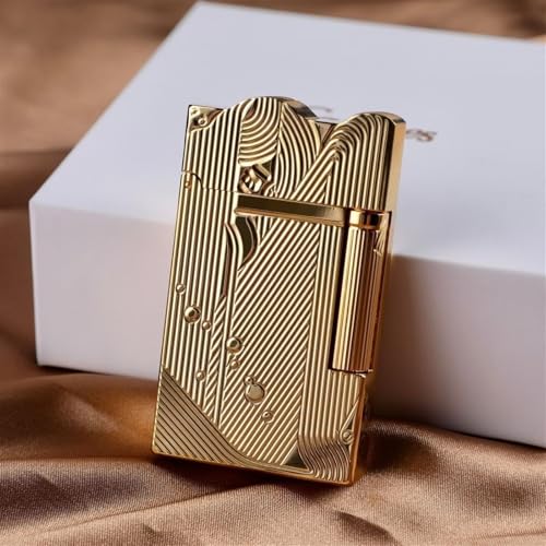 Retro antik metall fotogen tändare, vintage slipskiva påfyllningsbar bränsle Mässing tändare, mjuk flamma vindtät ficklampa Återanvändbar bekväm tändare, affärspresent (bränsle ingår ej) Guld