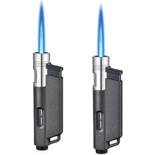 2 stycken stormtändare jetflamma, jetflammor, tändare butan påfyllningsbar, stormtändare, konsekvent låga, justerbar, alternativ form tändare för män (utan gas)