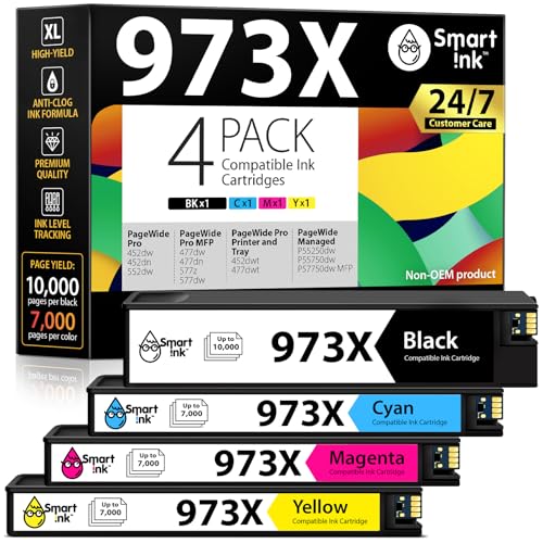 Smart bläckkompatibla bläckpatroner ersättning för HP 973X 973 973XL 4 kombo pack (svart och cyan, magenta, gul) att använda med HP PageWide Pro 477dw 577dw 452dw 477dn 452dn 577z 552dw P5250dw