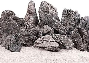 AquaOne Akvarium stenar minilandskapsset I naturstenar Seiryu Mix I stenar storlek M–XXL I Aquascaping sten I stendekoration I pagode bakvägg aquascape dekoration grå (20 kg)