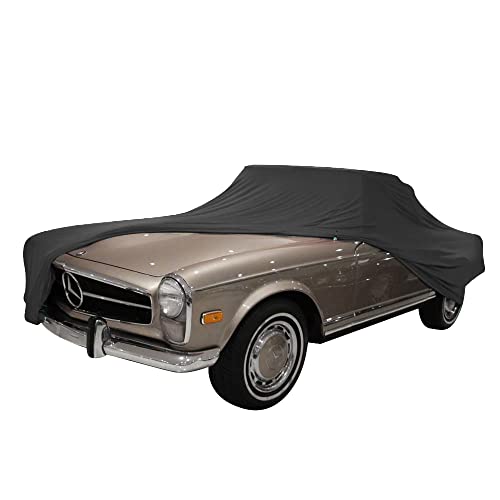 Star Cover inomhus bilskydd kompatibel med Mercedes-Benz SL-Class (W113 Pagode) Skräddarsytt Bilkapell Svart Car cover perfekt passform Stretch biltäcke
