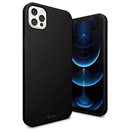 i-Paint Cover Skyddsfodral för iPhone 12 Pro Max 6.7" svart silikon med Microfiber inuti - Solid Case Black