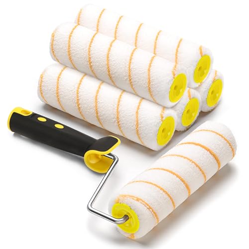 Fit For The Job 7-delad Mini Paint Roller Set för emulsionsmålning, Liten rulle och bricka för målning av väggar och tak, 4 tums Roller Set