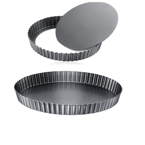 Djup tallrik quicheform, 28 cm x 5 cm hög pajform djup pajform med avtagbar botten, nonstick stor räfflad pajform lös bas rund djup bakform pizzaform pajform