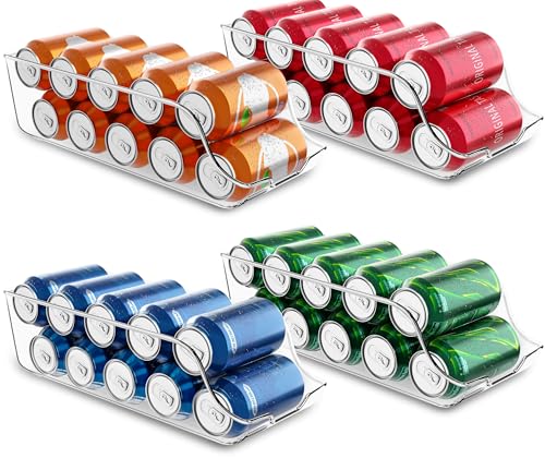 KICHLY Kylskåpshållare (4 paket) - Stapelbar och rymdbesparande - Förvaringsdispenser för läskburkar för skafferi, kylskåp, frys och tvättstuga (Klara)