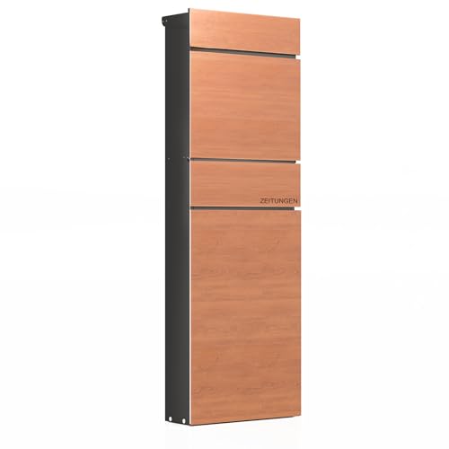 Wiltec Paketpostlåda med Tidningsrör i Trädesign, 395 x 142 x 1150 mm, robust konstruktion i galvaniserat stål med pulverlackerad yta, låsbart fack, två nycklar och enkel golvmontering