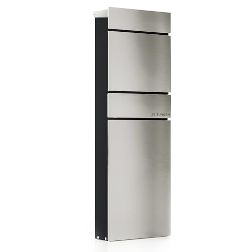 Wiltec Paketpostlåda med Tidningsrör, silverfärgad, 395 x 142 x 1150 mm, galvaniserat stål med pulverlackerad yta, låsbart fack och två nycklar, idealisk för post och tidningar