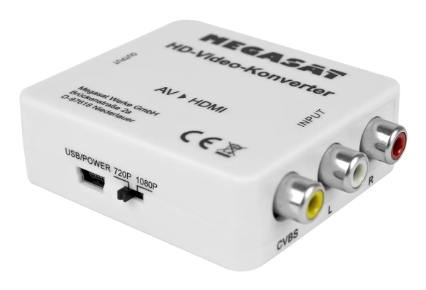 Megasat 0900196, Aktiv Videoomformer, Hvid, 1920 X 1080 Pixel, 1280 X 720,1920 X 1080 Pixel, 720P, 1080P, Ntsc 3.58, Ntsc 4.43, Pal, Pal M, Pal N, Secam