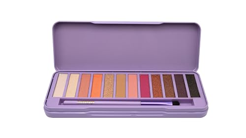 Bonvoyage Essentials Sunset in Cali, Ögonskuggs-Palett med Borste, 12 Ögonskuggor med Krämiga, Lättblandade Formler, Glittriga och Matta Nude-Nyanser samt Kalifornien-Inspirerade Livliga Färger