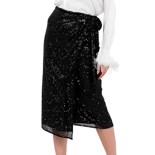 Lovedrobe dam midi kjol dam wrap paljett Embellished fodrad evening tillfälle party kläder, svart 38, svart, 38