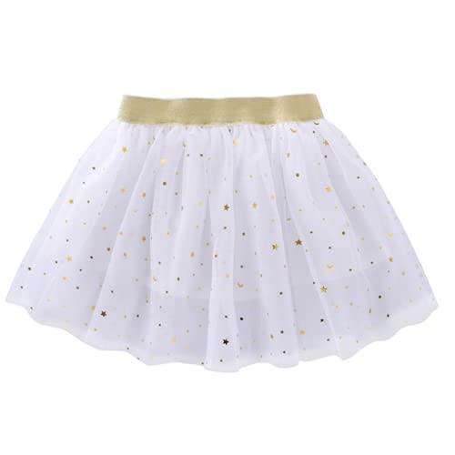 Tutu kjolar för flickor – 3 lager paljett stjärna elastisk midja balettdans kjol för flickor ålder 2–10 år, Vitt, 8-9 År