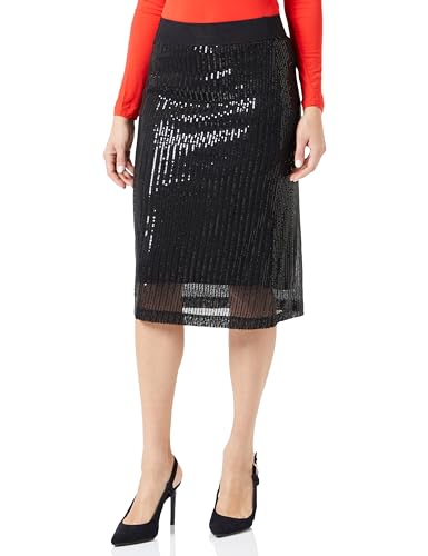 KAFFE Kvinnors paljett kjol med hög midja knälängd elastiskt midjeband smal passform, Svart djup, XS