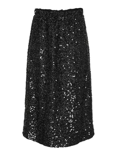 PIECES Pcserena paljett Hw Midi kjol mm dam, Svart/Detalj: Sequince Black, S