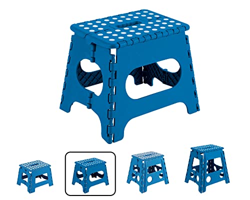 ARREGUI TB-027-A Liten hopfällbar pall | vikbar pall för barn och vuxna | Bärbar och vikbar hopfällbar pall | 150 kg lastkapacitet | pall för kök, badrum, camping, trädgård | 27 cm hög | blå