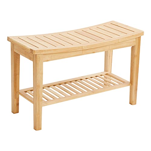 JIANCNGU Bambu duschbänkpall med förvaringshylla, rakpall med fotstöd med halkfria fötter, pall byta skor badrum, vardagsrum, sovrum, entré (C)