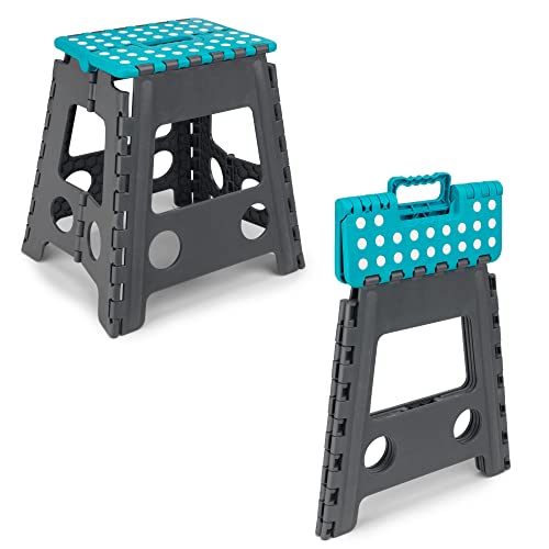 Beldray LA032638TQ Stor hopfällbar stegpall – stark hopfällbar pall för barn och vuxna, bärhandtag, lätt plastfotpall med 150 kg hållningskapacitet, kompakt gör-det-själv-tillbehör, turkos/grå