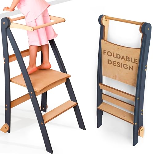 Roba lärningstorn enligt Montessori - Säker pall för barn - Perfekt som kökshjälpare - Klarar belastning upp till 80 kg - FSC®-certifierat trä - Målade i antracit