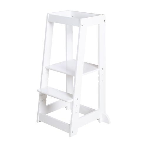 Baby Vivo inlärningstorn av trä – torn kök barnmöbler learning Tower – pall inlärningstorn för barn från ståhållaren – stegpall med bord Montessori kökshjälp inlärningsstol i vitt