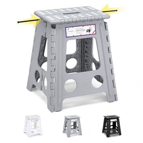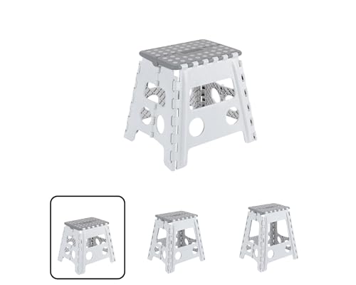 HOUSE DAY 40 cm (16 tum) fällbar stegpall – stor storlek kök hopfällbar stegpall för vuxna platsbesparande hopfällbar pall för barn och vuxna steg hållbar plastpall kraftig vikbar pall grå