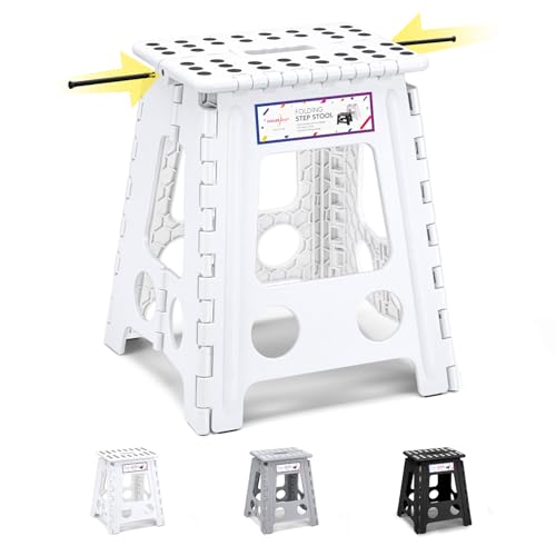 HOUSE DAY 40 cm (16 tum) fällbar stegpall – stor storlek kök hopfällbar stegpall för vuxna platsbesparande hopfällbar pall för barn och vuxna steg hållbar plastpall kraftig vikbar pall – vit