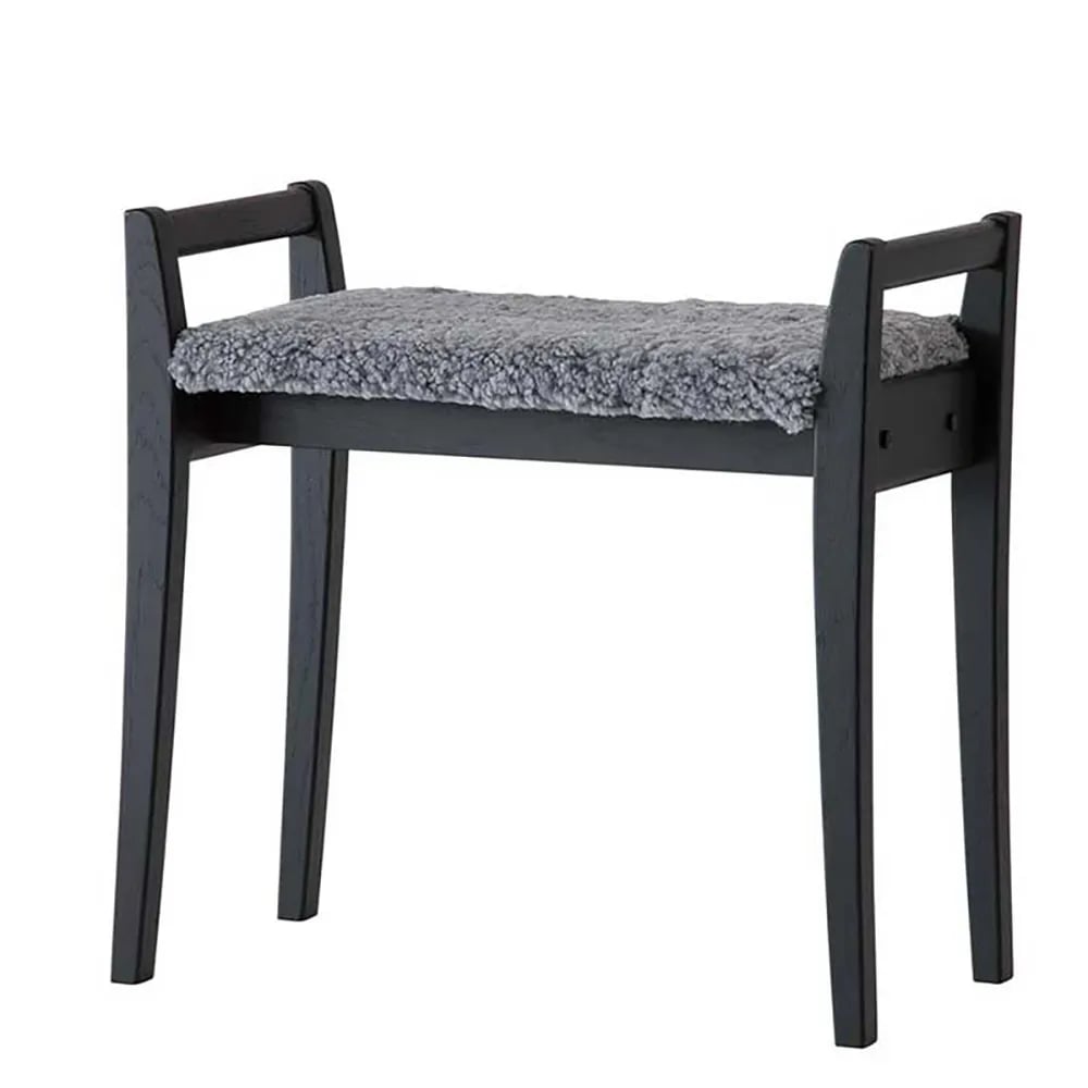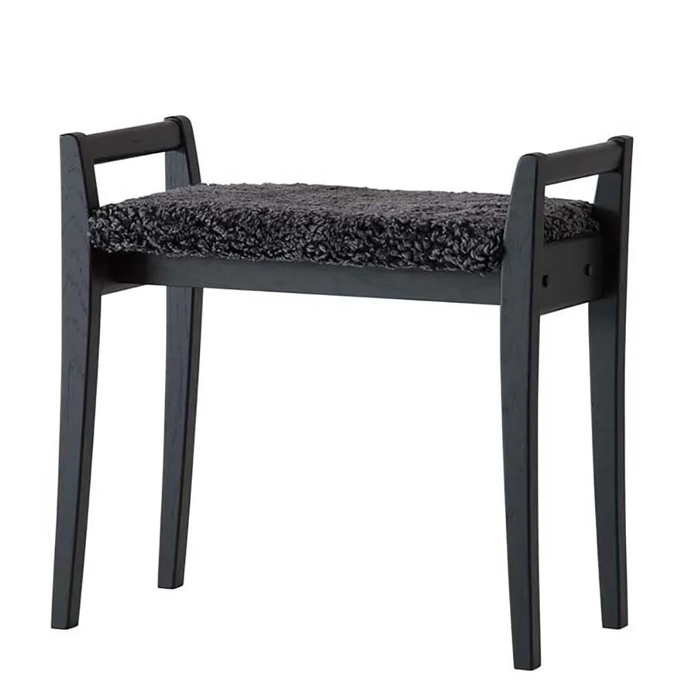 Oscarssons Möbel, Meja Pall Svartbetsad Ek/Fårskinn Mörkgrå