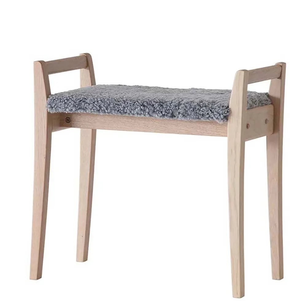 Oscarssons Möbel, Meja Pall Lackad Ek/Fårskinn Ljusgrå