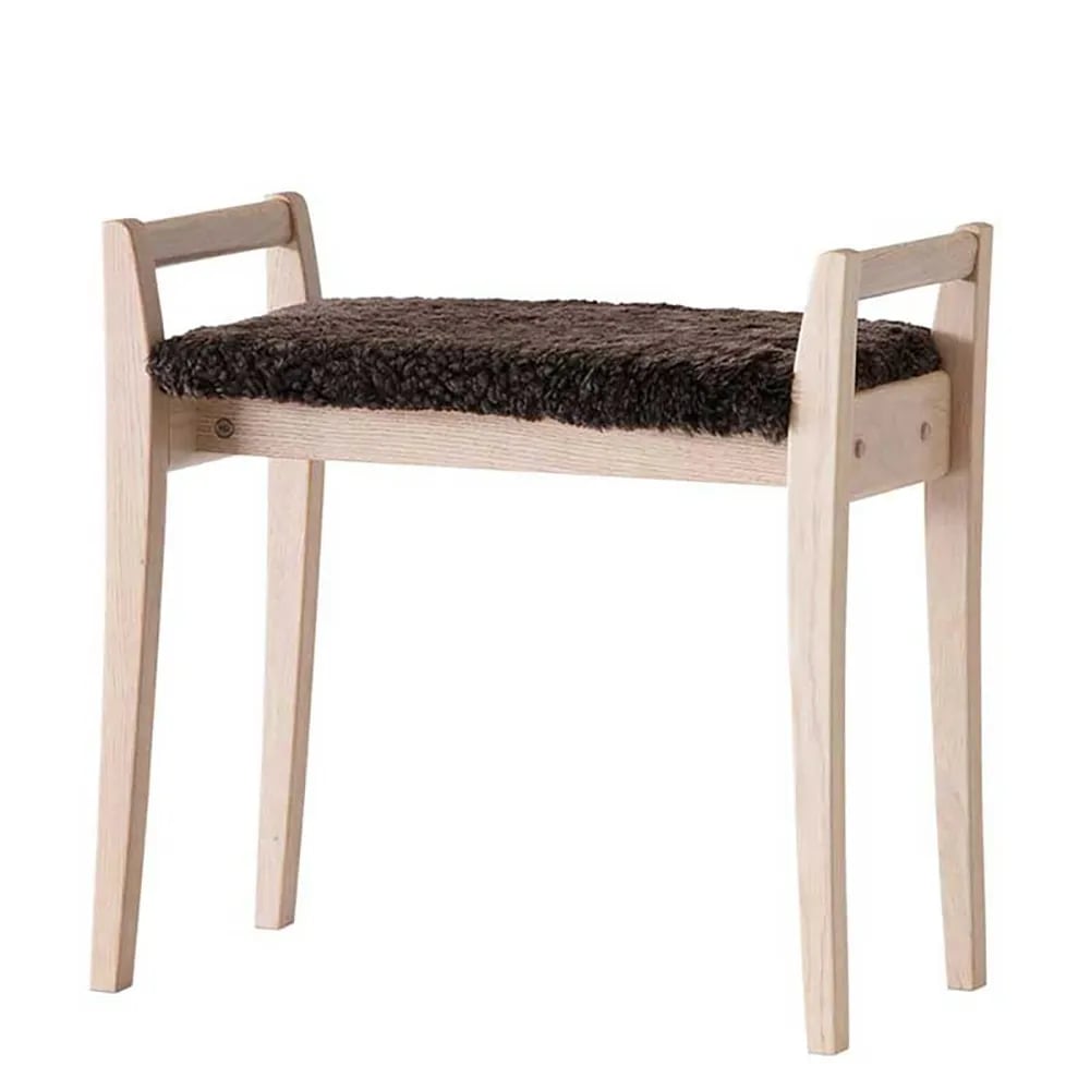 Oscarssons Möbel, Meja Pall Vitlackad Björk/Fårskinn Brun