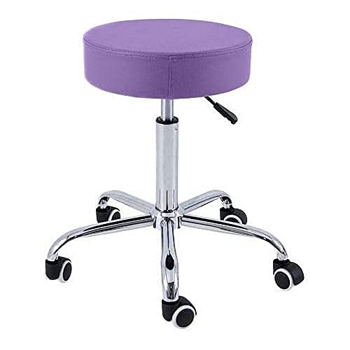 QUIRUMED Chrome Base Pall 5 hjul, stål, lila färg, konstläderklädsel, högdensitetsstoppning, lätt, höjdjusterbar, upp till 150 kg