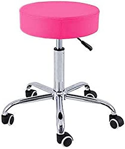 QUIRUMED Chrome Base Pall 5 hjul, stål, rosa färg, konstläderklädsel, högdensitetsstoppning, lätt, höjdjusterbar, upp till 150 kg