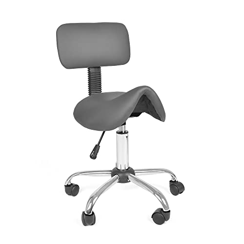Mingone Sadelpall med ryggstöd, snurrpall, arbetsstol, ergonomisk kontorspall med hjul, sadelstol, 360° pall, justerbar grå