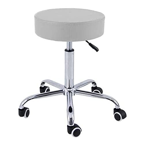 FURWOO Rund rullande pall med justerbar höjd och hjul för spa-salong massage vit