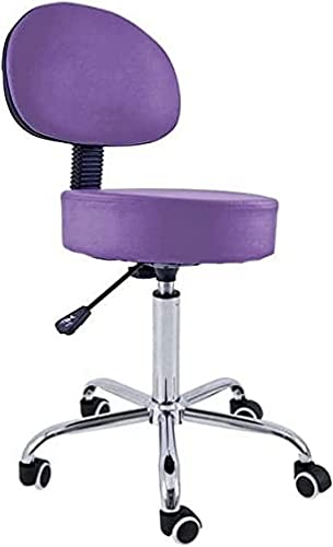 QUIRUMED Pall med ryggstöd, krombas, 5 hjul och gaslyft, lila färg, metallstruktur, konstläder, stoppning med hög densitet, justerbar höjd, upp till 150 kg