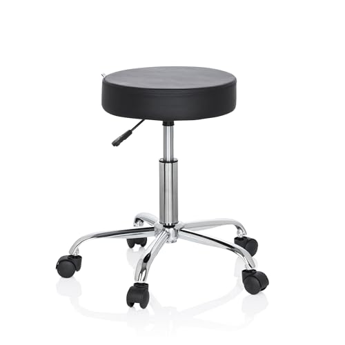 hjh OFFICE 670926 svarvpall Operator I - konstläderModern pall på hjul med rund sits, Sitsen kan vridas 360°, Klädsel av konstläder, Steglös justering av sitshöjden