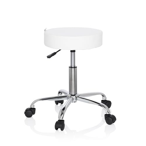 QUIRUMED Chrome Base Pall 5 hjul, stål, vit färg, konstläderklädsel, högdensitetsstoppning, lätt, höjdjusterbar, upp till 150 kg