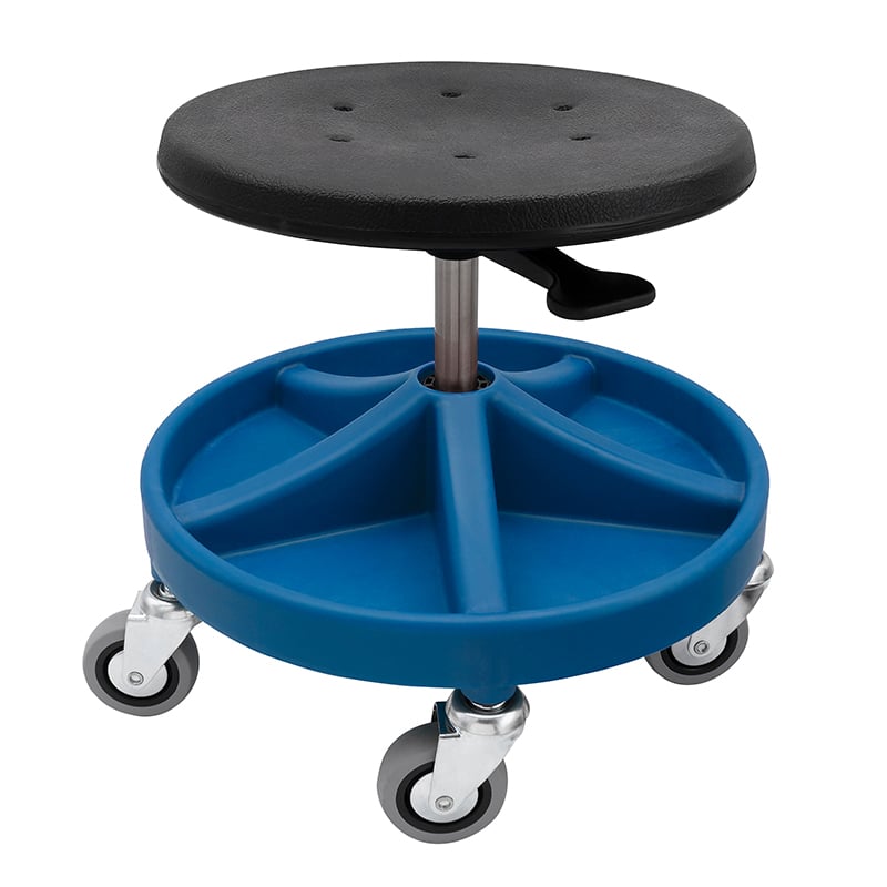Justerbar mekanisk pall med verktygsbricka och hjul – 150 kg kapacitet