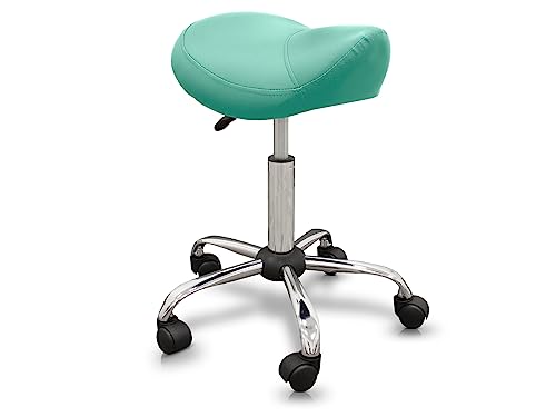 QUIRUMED Pall av ponnytyp, ergonomisk, med stålbas, grön färg, konstläderklädsel, justerbar höjd, vadderad sits, svängbara hjul, upp till 150 kg