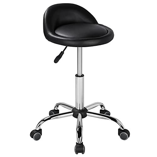 Yaheetech Rullpall med ryggstöd, justerbar höjd 46,5–61 cm vridbar pall med hjul 360° vridbar kontorspall, arbetspall för bar/salong/läkarpraktik/verkstad