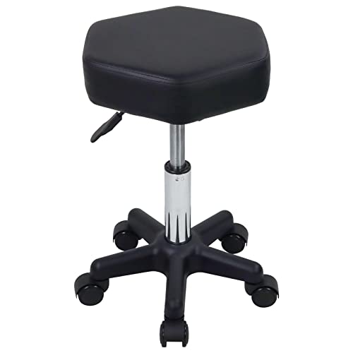 FURWOO Sexkantig rullande pall justerbar höjd pall med hjul för spa-salong massage svart