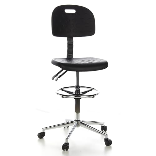 hjh OFFICE 665060 arbetsstol 23 kontorsstol/pall med hjul – Kan ställas in mycket högt, Ringfotstöd med justerbar höjd, Stöd med justerbar höjd, Extremt hållbar sits i PU-hårdskum