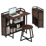 Fällbart skrivbord med eluttag – Kompakt arbetsyta med pall