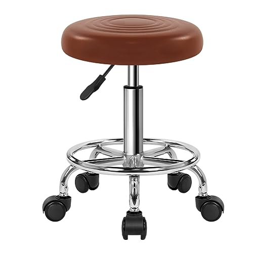 WKWKER Runt Rullande Sönhetspall På Hjul PU Läder Svängbar Höjd Justerbar Salong Stol Pall Kök Arbete SPA Pallar Med Hjul (Brun)