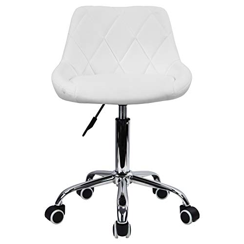 KKTONER Svängbar rullpall justerbar höjd PU-läder kudde salong sminkbord massage kontor pall stol liten (vit)