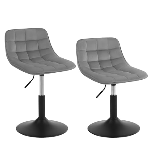 EUGAD barstol set om 2, höj- och sänkbar barstol, svängbar pall, ergonomisk stol, bistropall, stoppad pall med sammetsöverdrag, med ryggstöd, fotstöd, tillverkad av metall, mörkgrå,1051BY-2