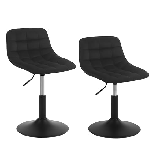 WOLTU Set med 2 Justerbar Pall Stol Arbetspall Kontorspall Matstol Småbordsstol Hemmakontor Kommersiell butik Multifunktionell 360° Swivel Velvet Black Seat 38-49,5 cm hög