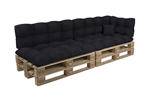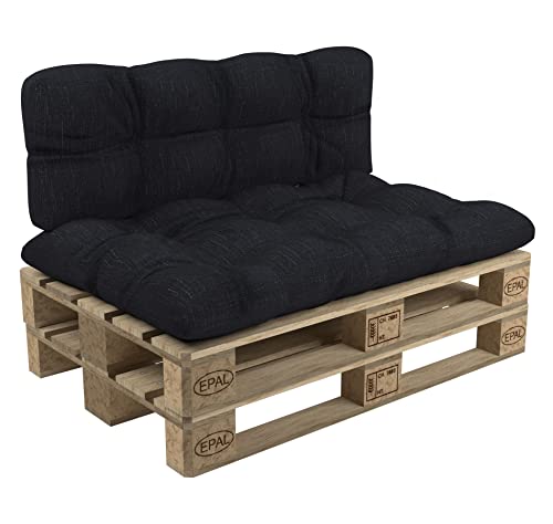 POKAR pallkuddar med avtagbart lock, uppsättning 2: 1x sittdyna 120x80cm + 1x ryggdyna 120x40cm, kallskum, pallklädsel, pallsoffa, inne och ute, utan pallar, svart