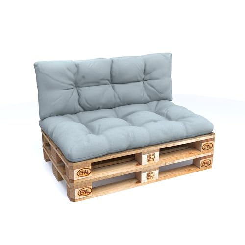 VOUNOT Euro pallkuddar set för utomhus eller inomhus, pallsittdynor 120 x 80, pallryggkuddar 120 x 40, vattentäta, grå